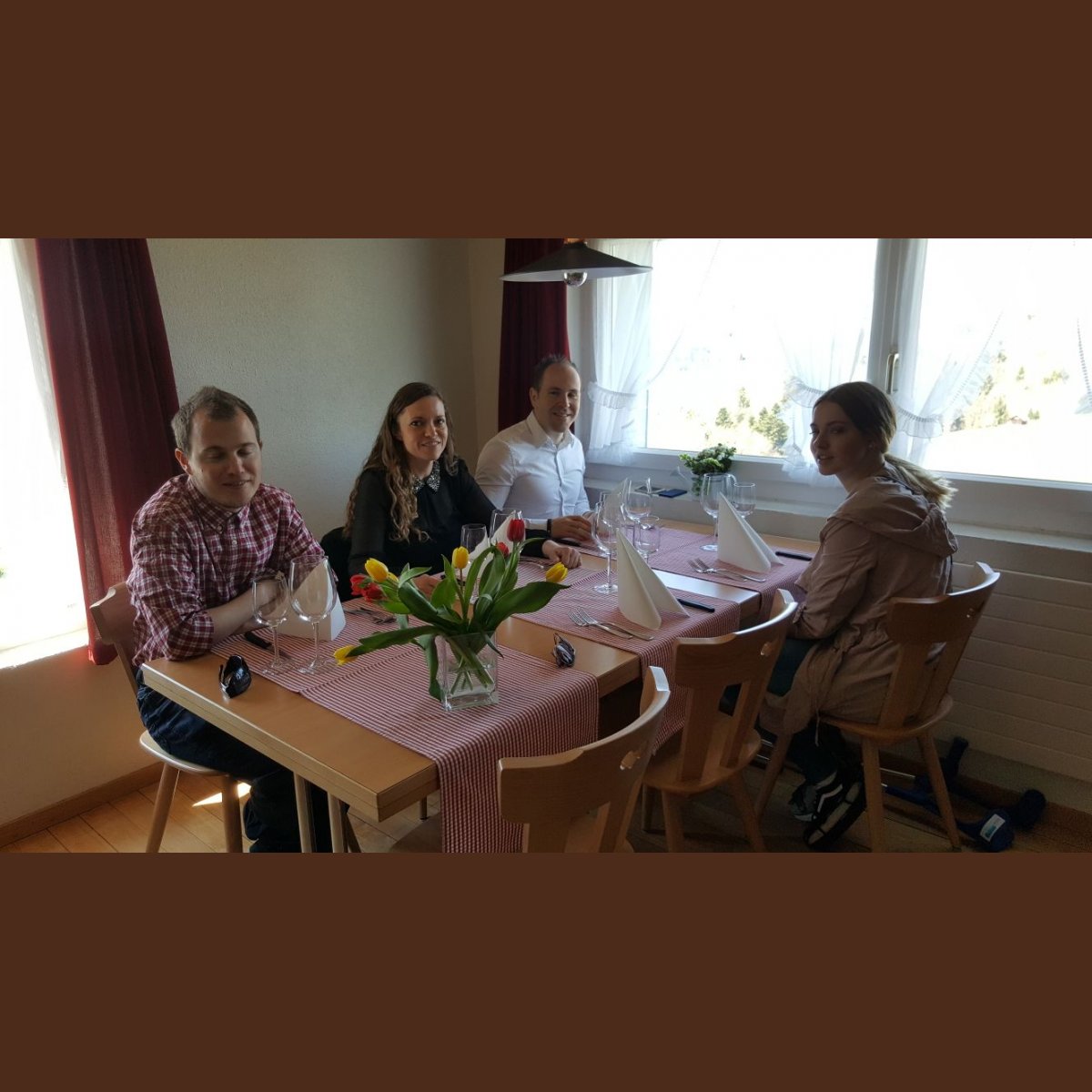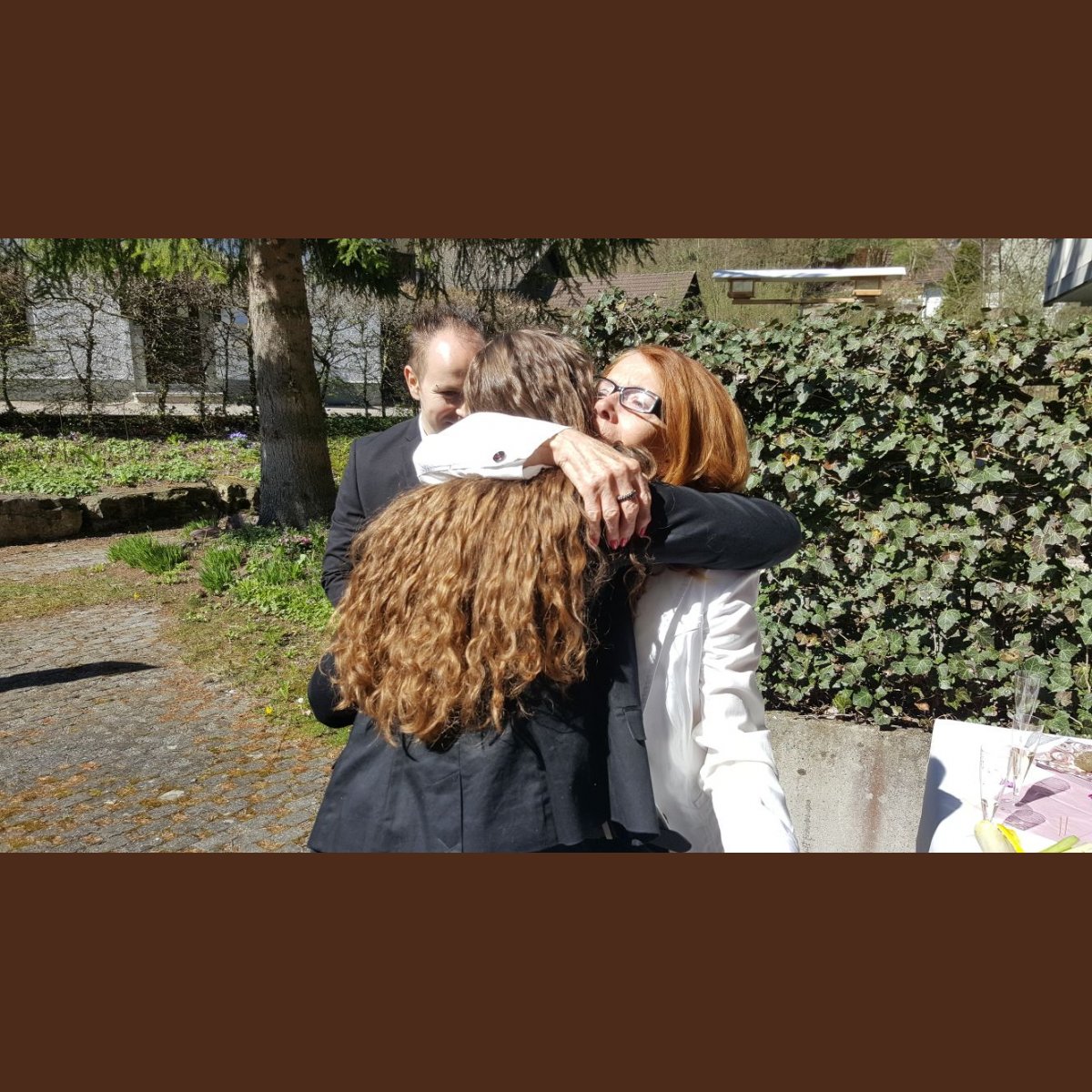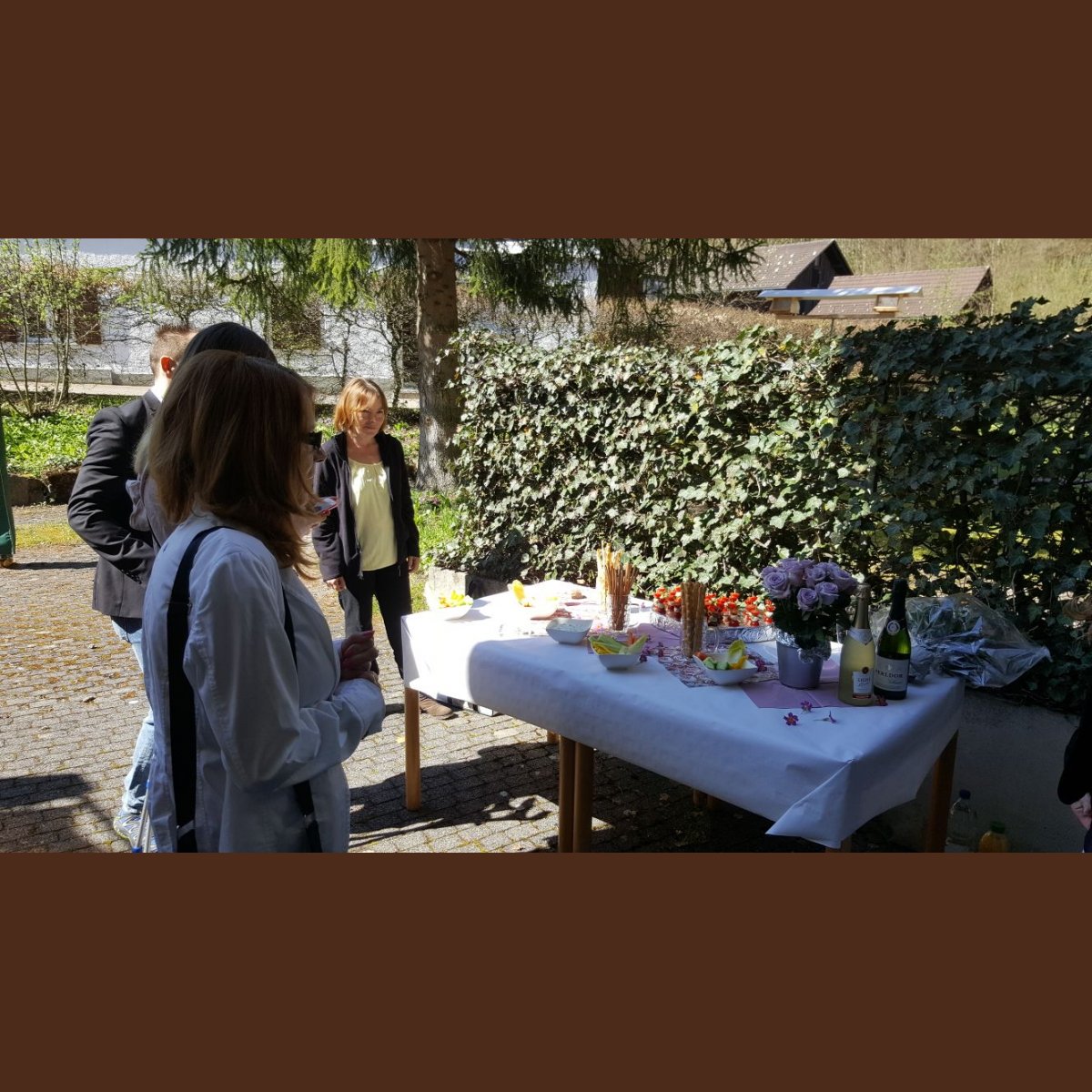 Anschliessend gab es einen kleinen Überraschungs-Apéro und erste Glückwünsche und Geschenke im Hinterhof der Bibliothek Bauma. Danach sind wir im Sternen, Sternenberg Mittagessen gegangen.